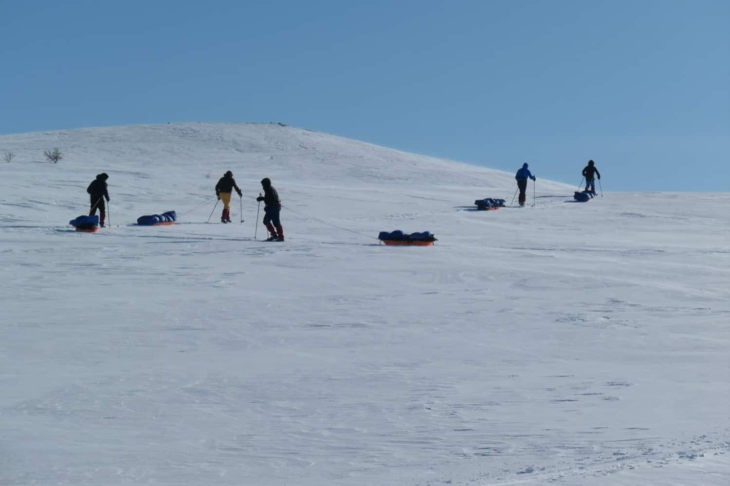 During the trip we are in uninhabited territory. In case of an emergency, our position can always be reached by rescue services by snowmobile or helicopter.