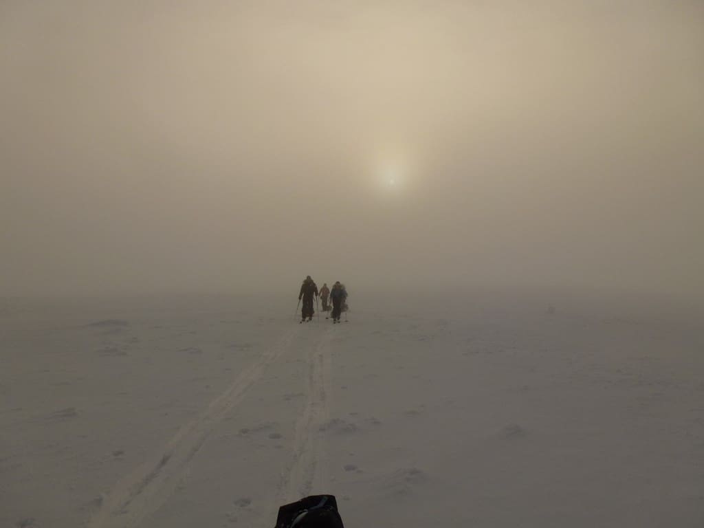 Deze dagen staan in het teken van de trekking. We staan op voor dat de zon opkomt. Altans, dan gaat de wekker. Voor dat je je slaapzak uit komt, eet je eerst rustig je ontbijt. Met het eerste zonlicht staan we klaar. Ski’s onder en slee achter ons aan. Klaar voor een nieuwe dag. De route die we volgen gaat van Zuid naar Noord met het drielandenpunt als ultiem doel. Afhankelijk van de omstandigheden kunnen we afwijken en een omweg of een short-cut nemen. Alles om er voor te zorgen dat we op dag 11 een rondje om de drielandensteen kunnen lopen.
