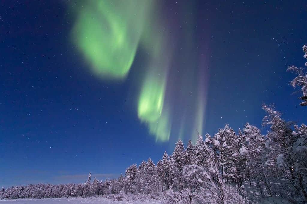 Als wij er zijn gaat de zon om vier uur ’s middags onder. En komt pas om acht uur ’s morgens weer op. Tijd genoeg om op jacht te gaan naar het Noorderlicht. Op het zien van het Noorderlicht krijg je geen garanties. We zijn er wel in de ideale omstandigheden. Boven de poolcirkel en in de winter als het donker is.