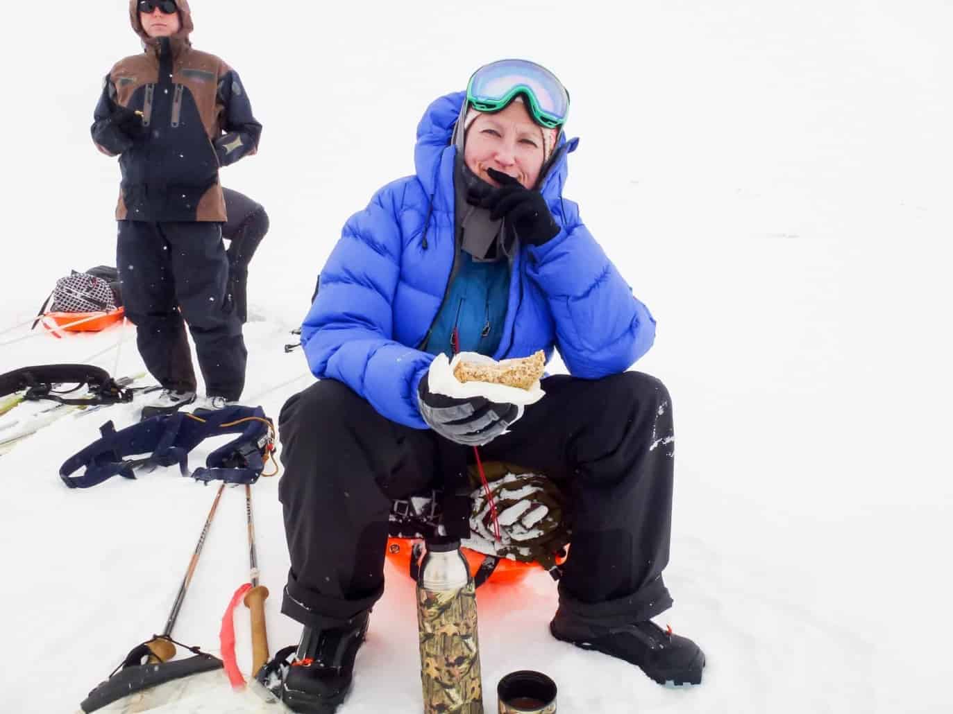 Overdag staat in het teken van verplaatsen. Dat doen we met toerlanglaufski’s. Speciale langlauf ski’s om in de vrije natuur mee te lopen.