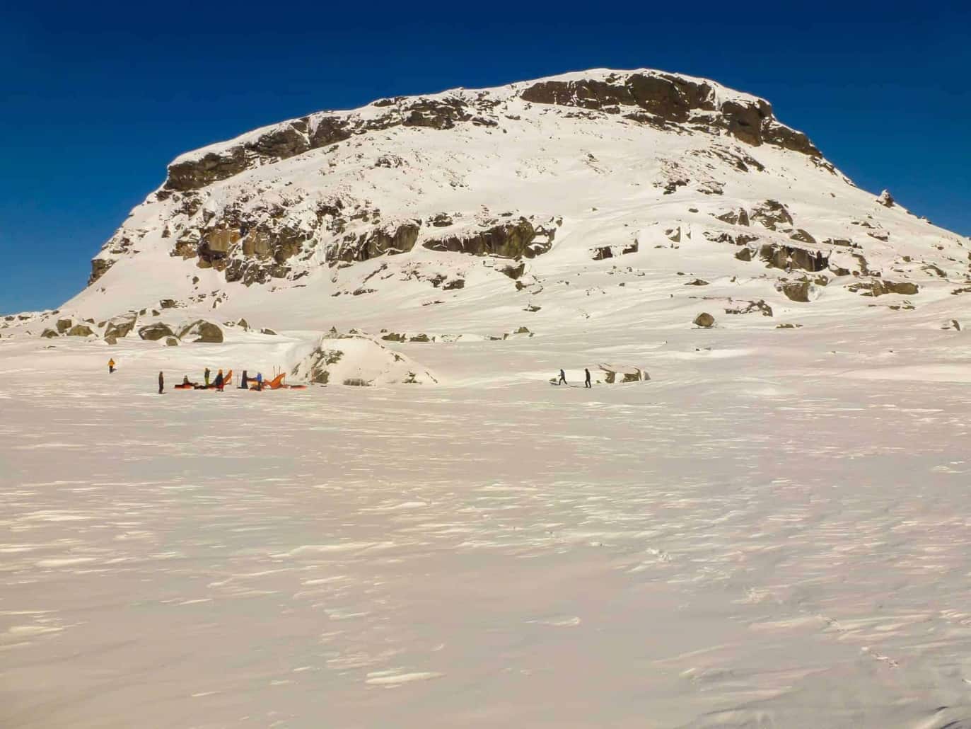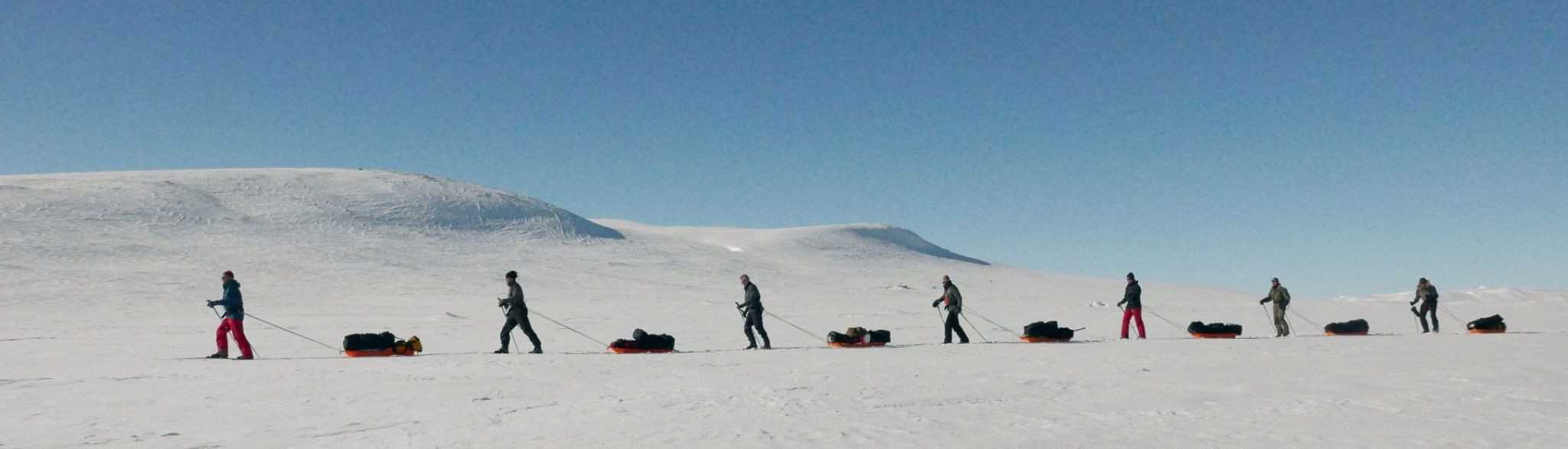 Tijdens de tocht bevinden we ons in onbewoond gebied. Bij nood is onze positie door de reddingsdiensten altijd te bereiken met een sneeuwscooter.