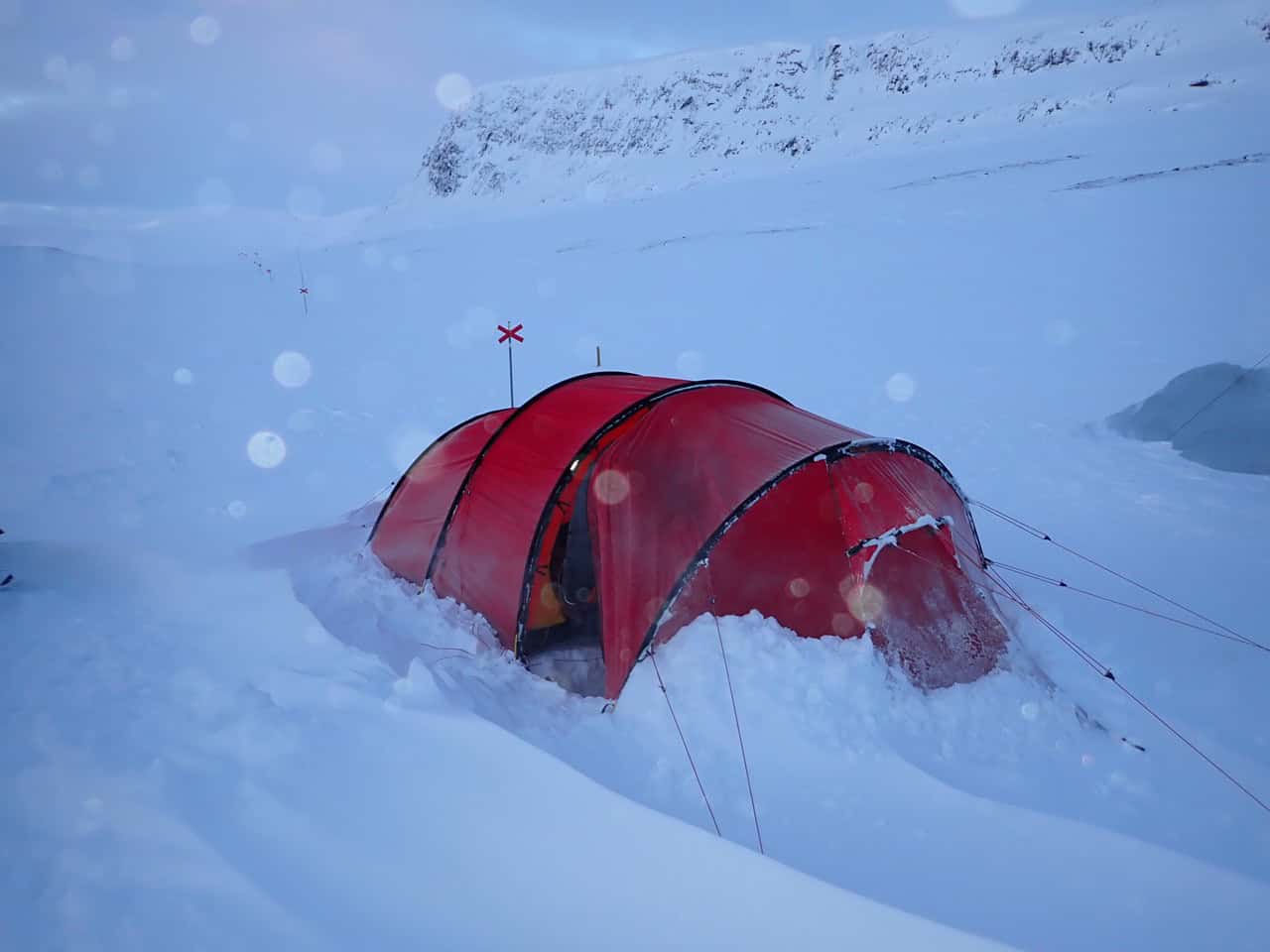 Zes nachten slapen we in een expeditie tent.